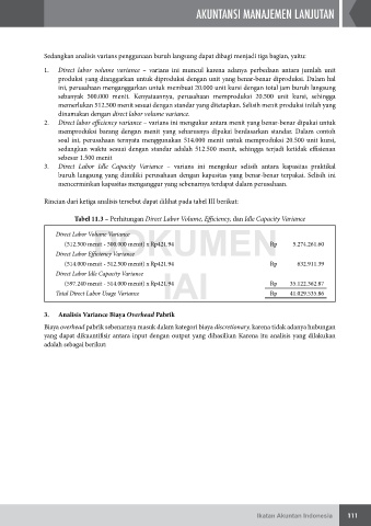 Tabel 11.3 – Perhitungan Direct Labor Volume, Efficiency, dan Idle Capacity Variance