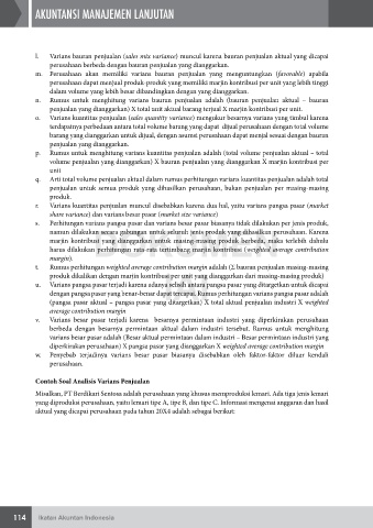 l. Varians bauran penjualan (sales mix variance) muncul karena bauran penjualan aktual yang dicapai