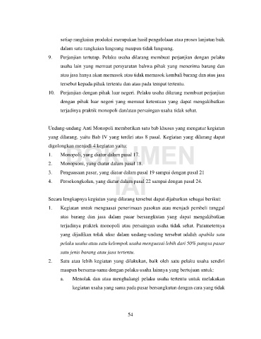 Undang-undang Anti Monopoli memberikan satu bab khusus yang mengatur kegiatan