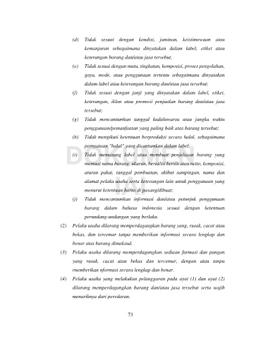 (f) Tidak sesuai dengan janji yang dinyatakan dalam label, etiket,