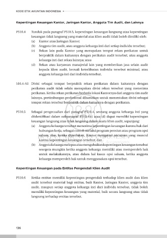 P510.4 Tunduk pada paragraf P510.5, kepentingan keuangan langsung atau kepentingan
