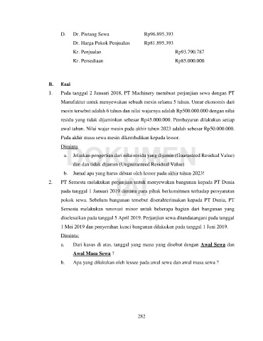 Manufaktur untuk menyewakan sebuah mesin selama 5 tahun. Umur ekonomis dari