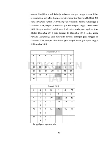 Desember 2018, terdapat 1 hari beban gaji dan upah akrual, yaitu pada tanggal