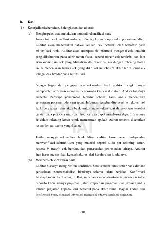 deposit in transit, cek beredar, dan penyesuaian-penyesuaian lainnya. Auditor