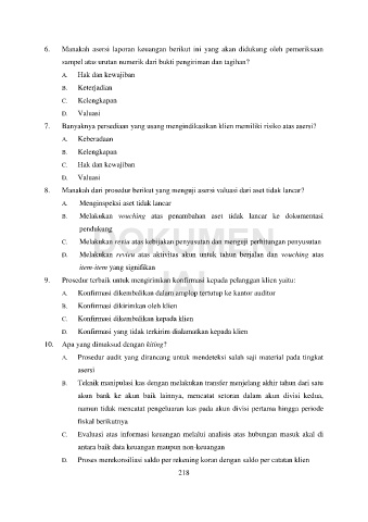 6. Manakah asersi laporan keuangan berikut ini yang akan didukung oleh pemeriksaan