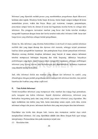dibandingkan dengan jumlah pengorbanan untuk memperoleh informasi tersebut, dan jumlah
